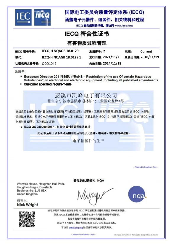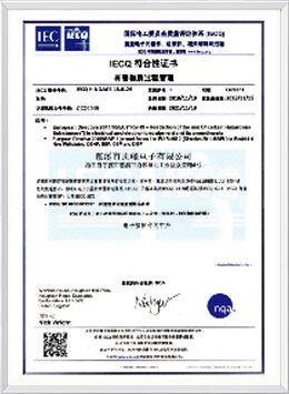 IECQ certification represents manufacturing that complies with hazardous substance process management system standards
