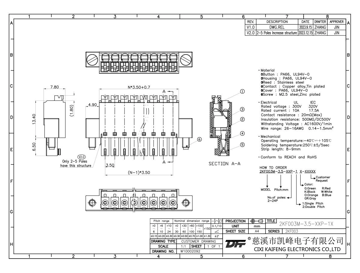 MATERIAL:①Screws:Steel Zinc plated②Reed : Stainless steel③Clip : Phosphor bronze ④Button : PA66,UL94V-0 ⑤Housing : PA66,UL94V-0 ElectricalUL IEC &n