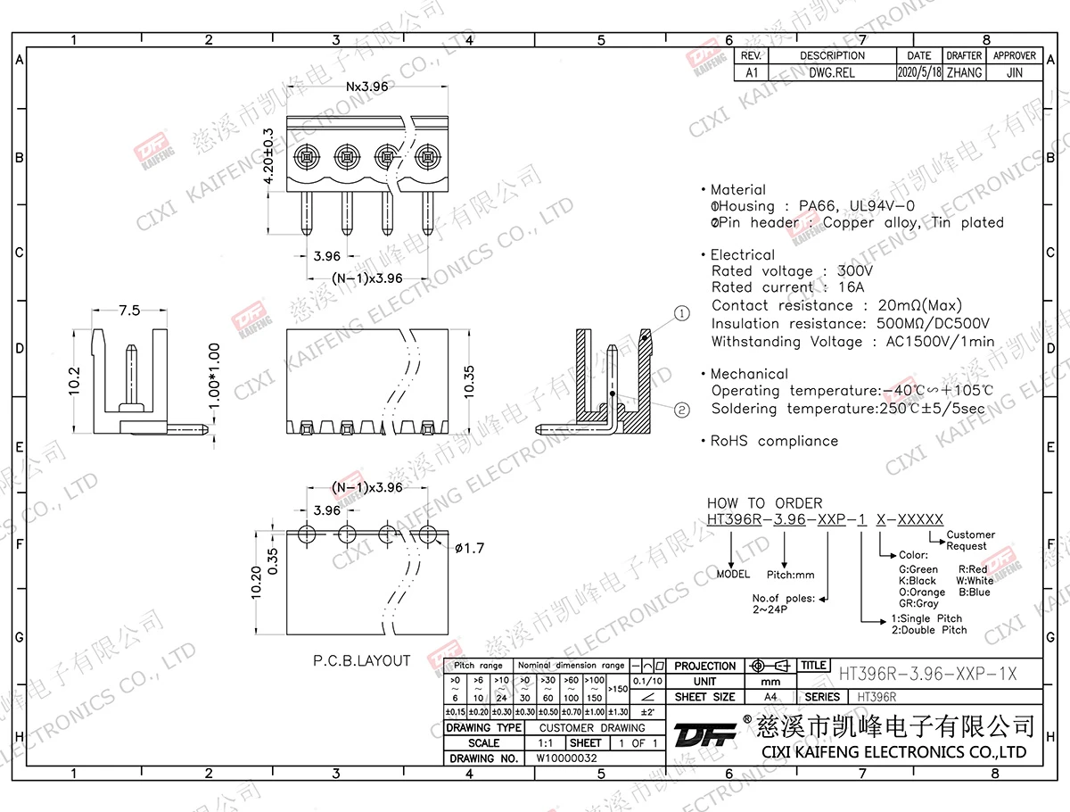 Pluggable Terminal Block HT396R-3.96mm