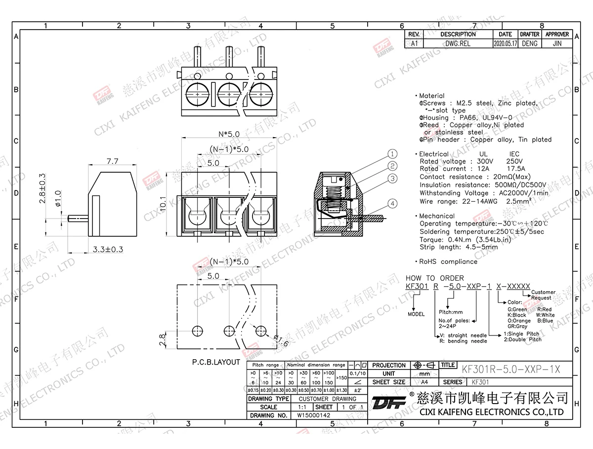 MATERIAL:①Screws : M2.5 Steel Zinc plated,"-"slot type ②Housing : PA66, UL94V-0 ③Reed : Phosphor bronze Ni plated or stainless steel ④Pin header : Brass, Tin plated