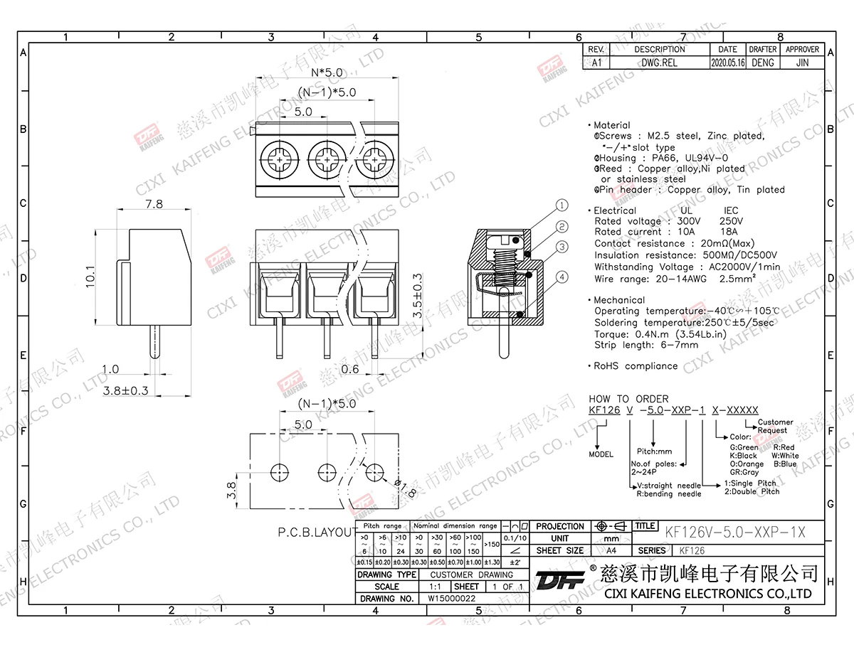 PCB Terminal Block KF126V-5.00mm