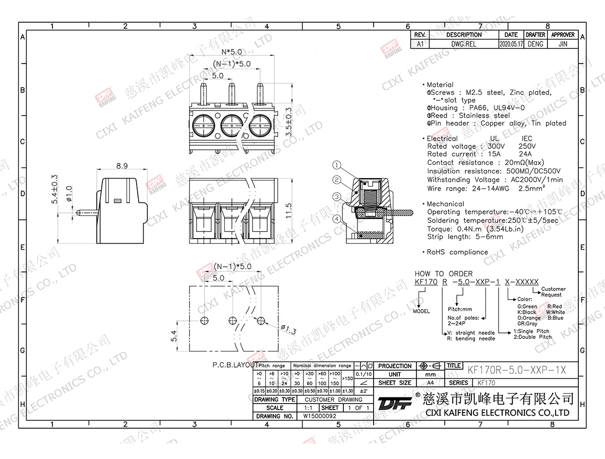 MATERIAL:①Screws : M2.5 Steel Zinc plated,"-"slot type ②Housing : PA66, UL94V-0 ③Reed : Phosphor bronze Ni plated or stainless steel④Pin header :