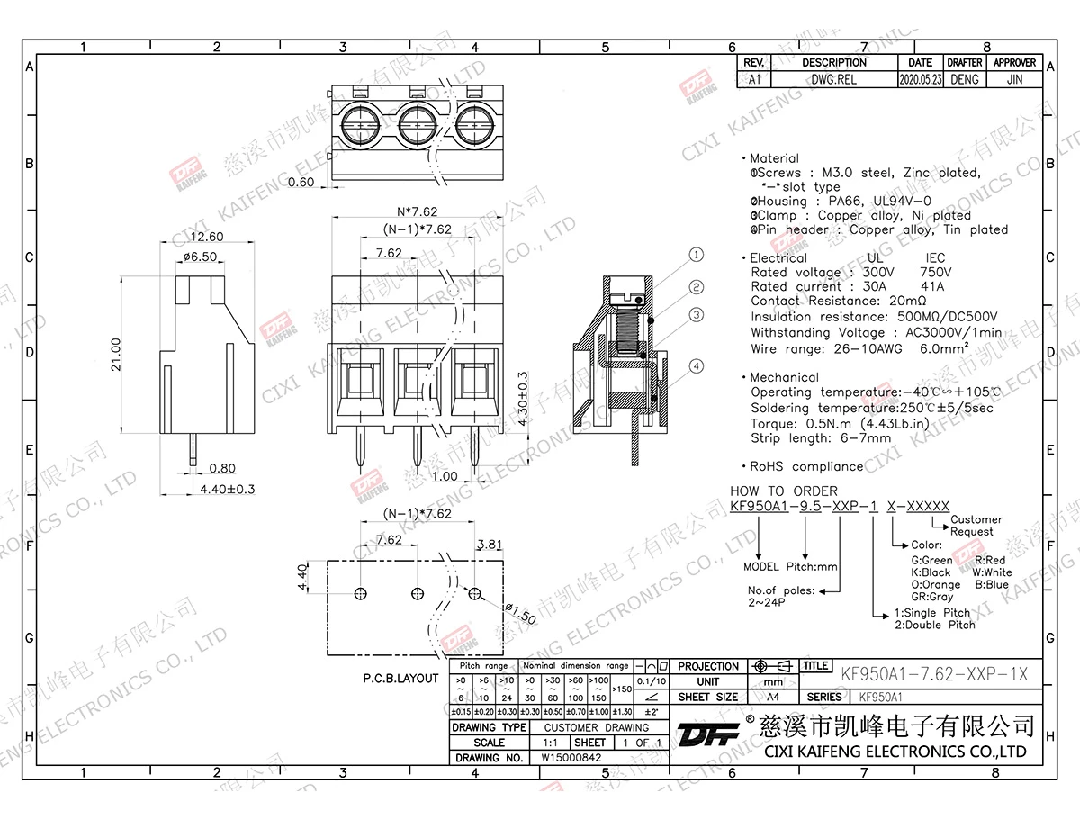 PCB Terminal Block KF950A1-7.62mm