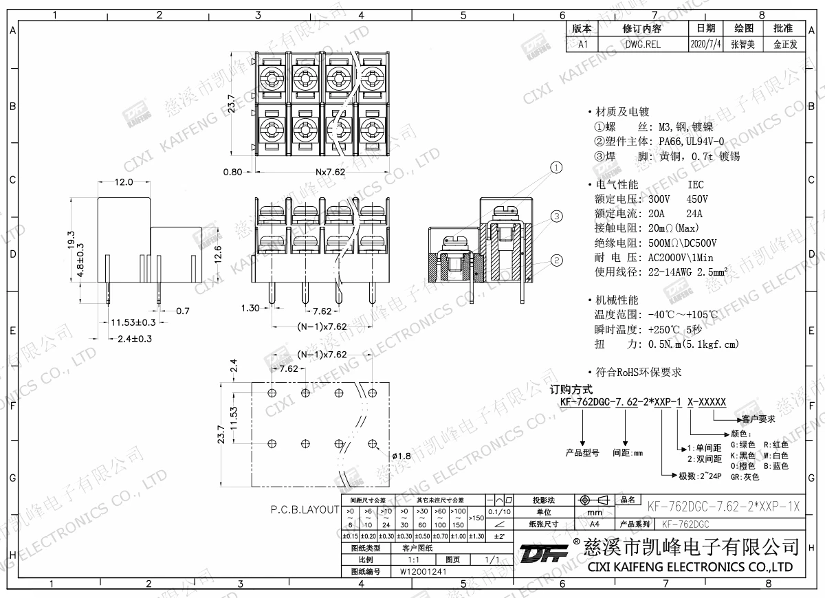 Barrier Terminal Block KF-762DGC-7.62mm