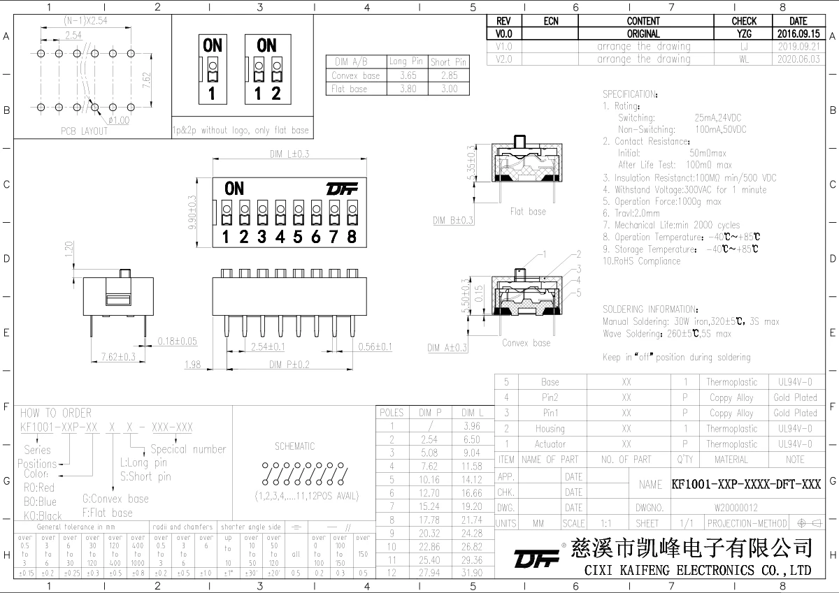:UL94V-0 Thermoplaslic,White Terminal:Phosphor Bronze,Gold plating ElectricalElectrical life:2000 operations per switch 24VDC,25mARated current:10