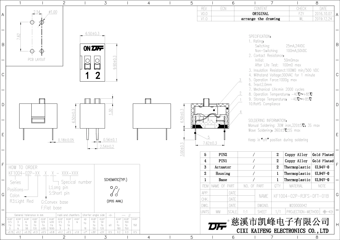 :UL94V-0 Thermoplaslic,WhiteTerminal:Phosphor Bronze,Gold plating ElectricalElectrical life:2000 operations per switch 24VDC,25mARated