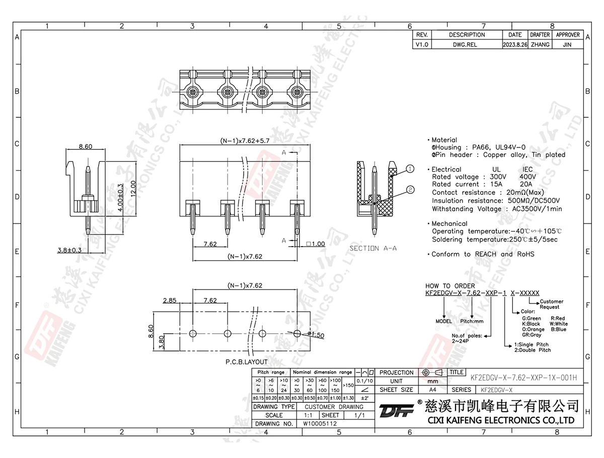 Pluggable Terminal Block KF2EDGV-X-7.62mm-001H