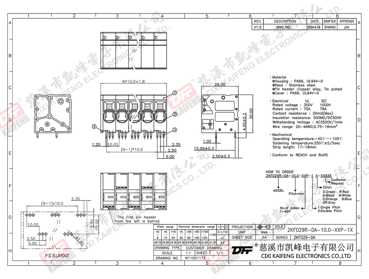 PCB Terminal Block 2KF029R-DA-10.0mm