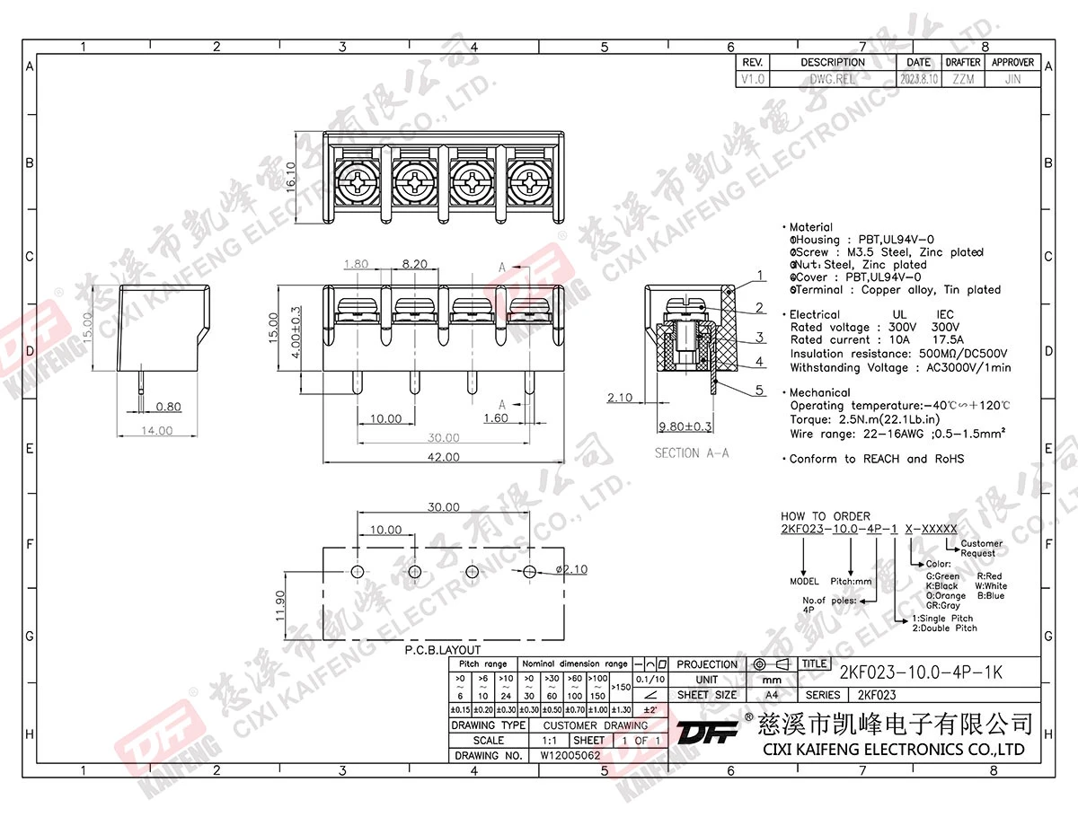 Barrier Terminal Block 2KF023-10.0mm