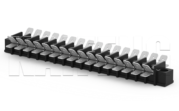 栅栏式接线端子 材质电镀:M4.0 钢,镀镍端子:黄铜,0.8t 镀镍塑件: PA66,UL94V-0电气性能ULIEC额定电压300V 750V 额定电流25A32A绝缘电阻500MΩ/DC500V耐电压AC2000V/1min使用线径22-12AWG 4.0mm²机械性能温度范围-40℃~+105℃ 扭矩1.2N.m 10.53Lb.in