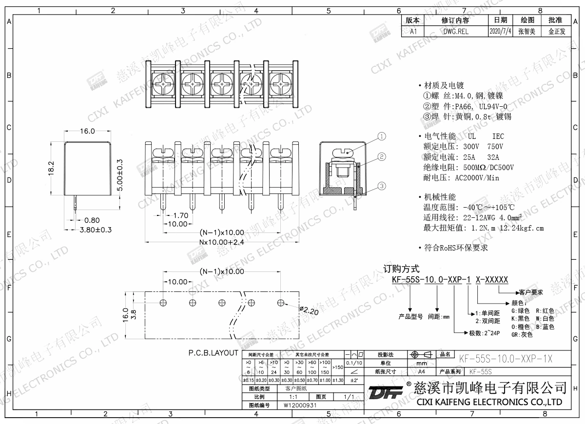 栅栏式接线端子 KF-55S-10.00mm