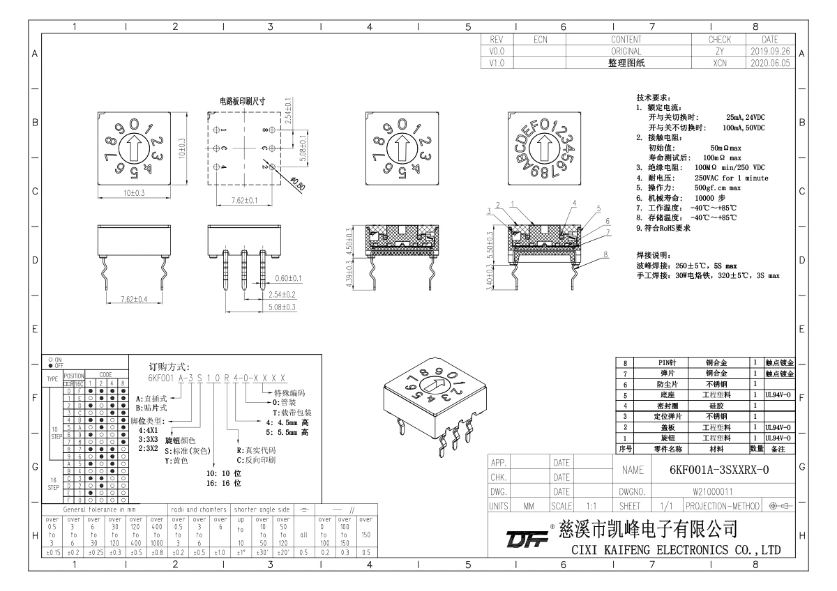 拨码开关 6KF001A-3S10R5-0
