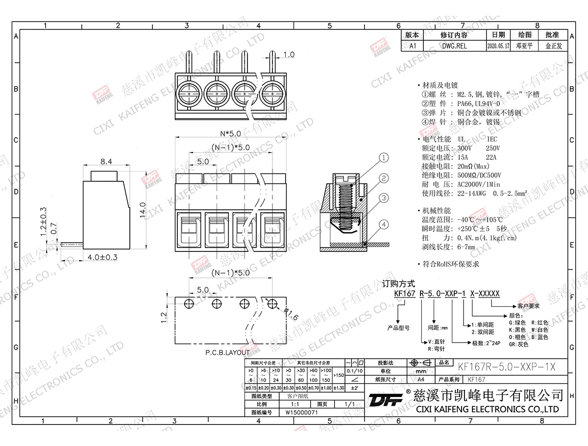 固定式接线端子 KF167R-5.00mm