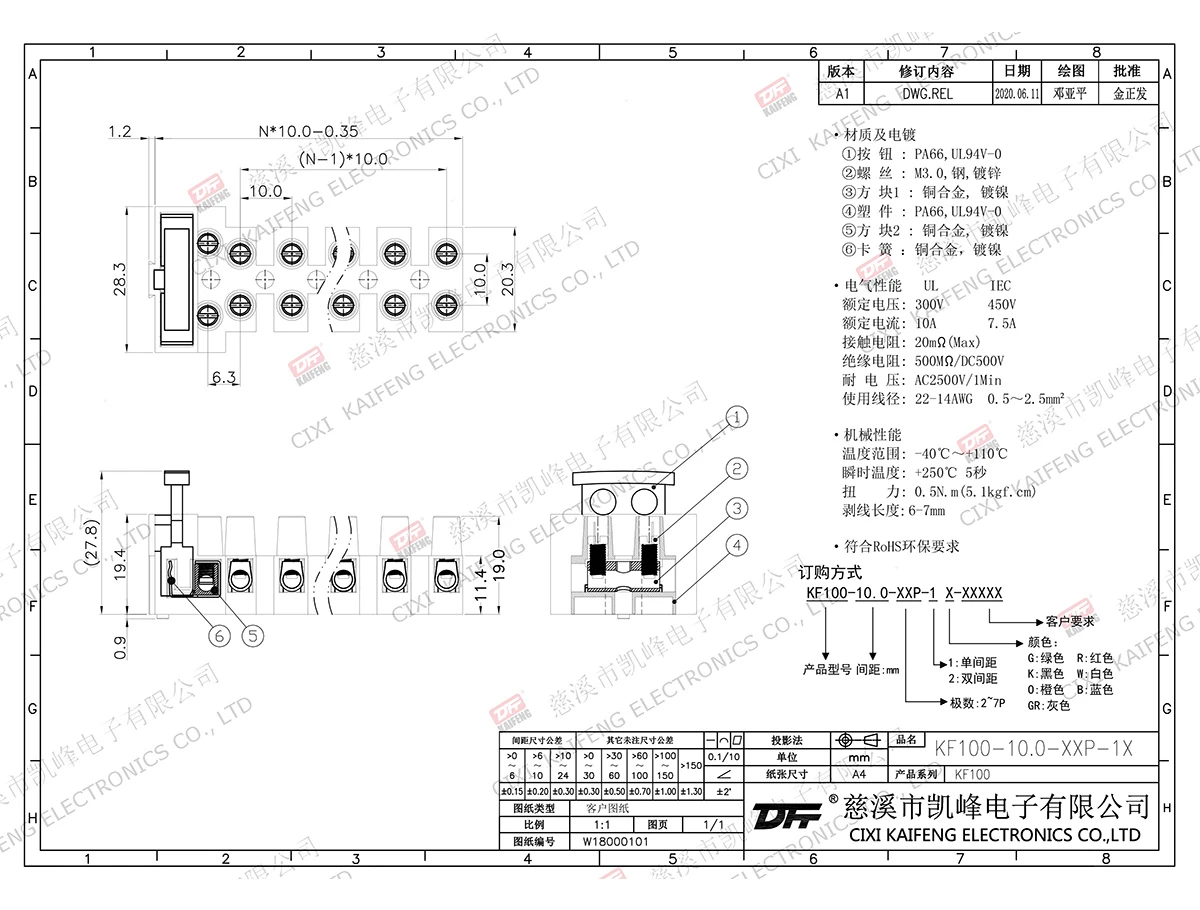 固定式连接端子 材质电镀:螺丝 :M3.0, 钢 镀锌 塑 件 : PA66 UL94V-0 触点材料 :