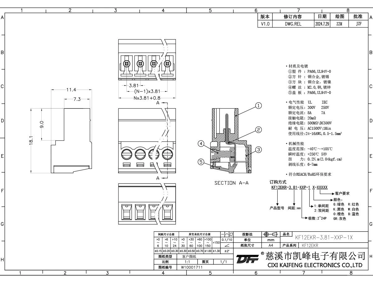 插拔式接线端子 KF12EKR-3.81mm
