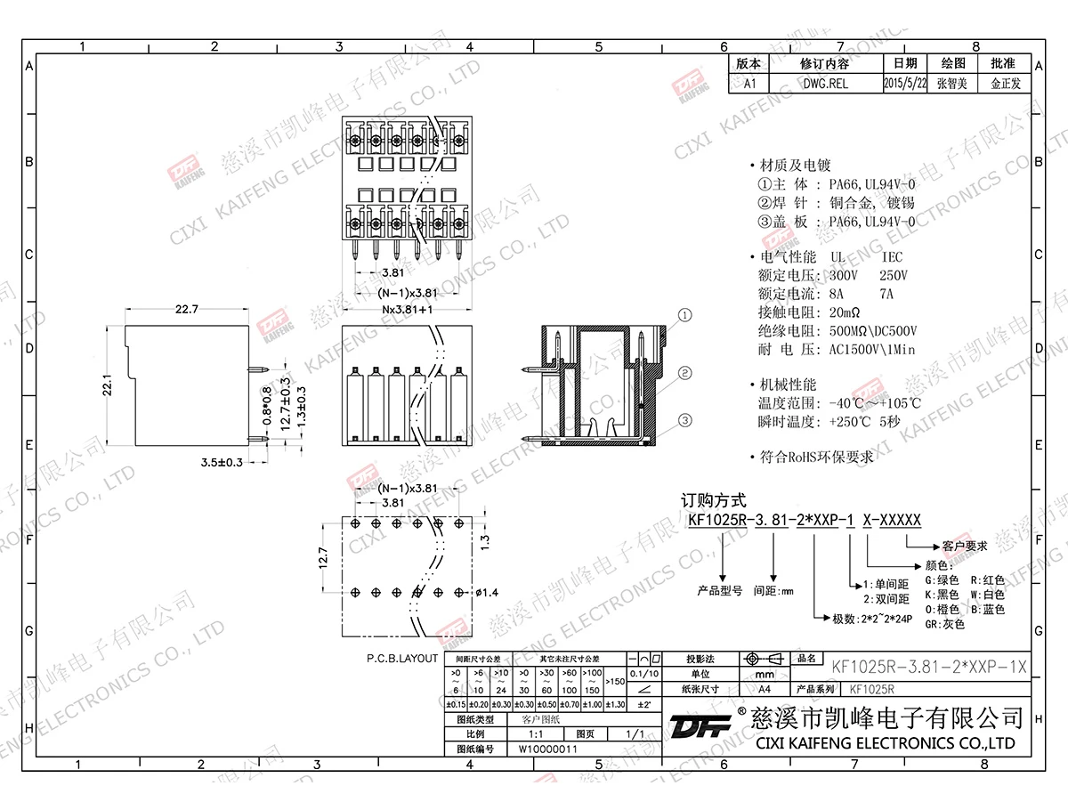 插拔式接线端子 KF1025R-3.81mm