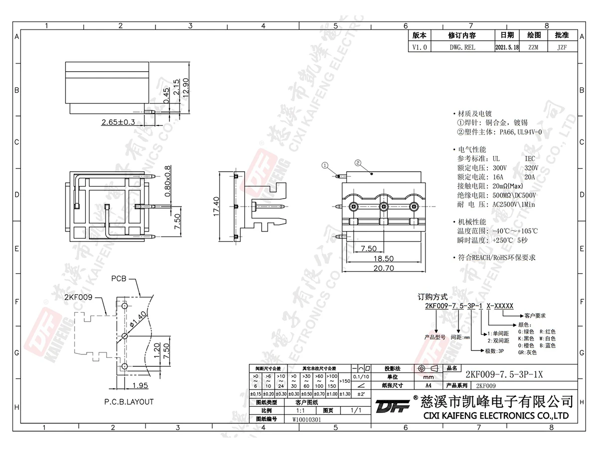插拔式接线端子 2KF009-7.5mm