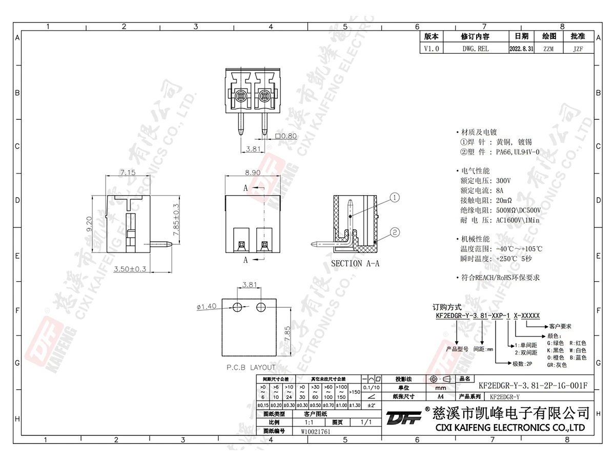 插拔式接线端子 KF2EDGR-Y-3.81mm-001F