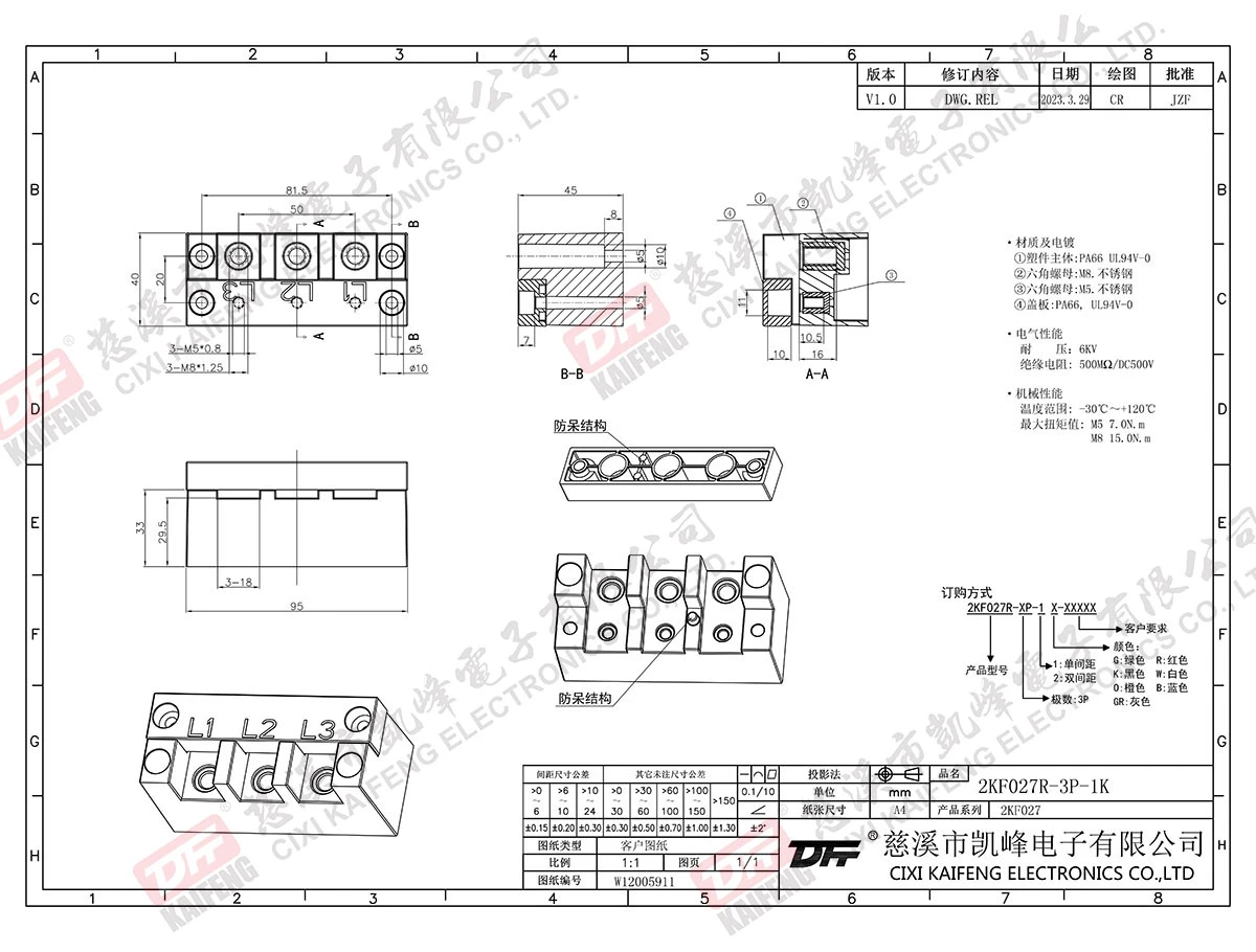 栅栏式接线端子 2KF027R