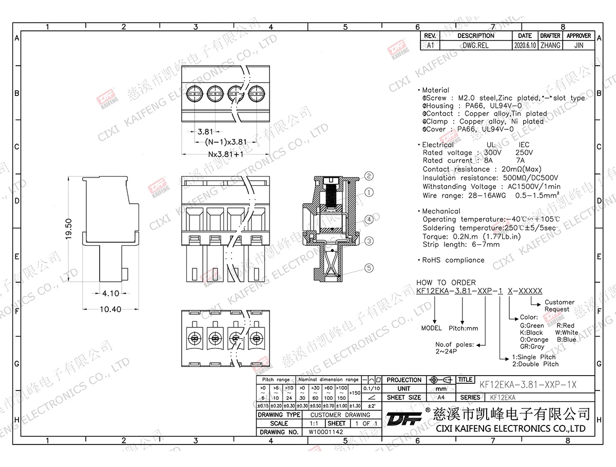 MATERIAL:M2.0,Steel Zinc platedcontact: Phosphor bronzePin header: -Housing: PA66,UL94V-0ElectricalULIECRated voltage300V 250V Rated current8A7AContact resistance20mΩInsulation resistance500MΩ/DC500VWithstanding voltage AC1500V/1minWire range28-16AWG 0.5-1.5mm²MechanicalTemp.rang-40℃~+105℃ Max.soldering+250℃,5