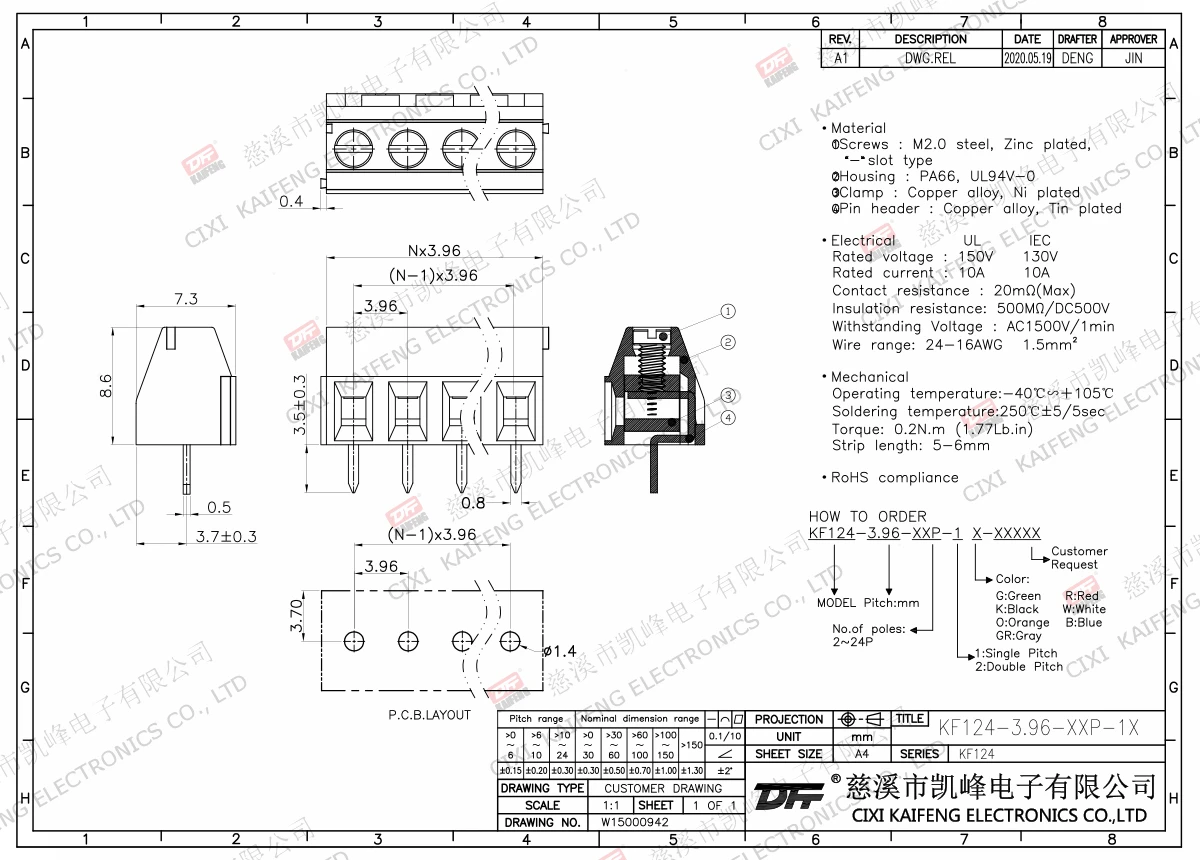 PCB Terminal Block KF124-3.96mm