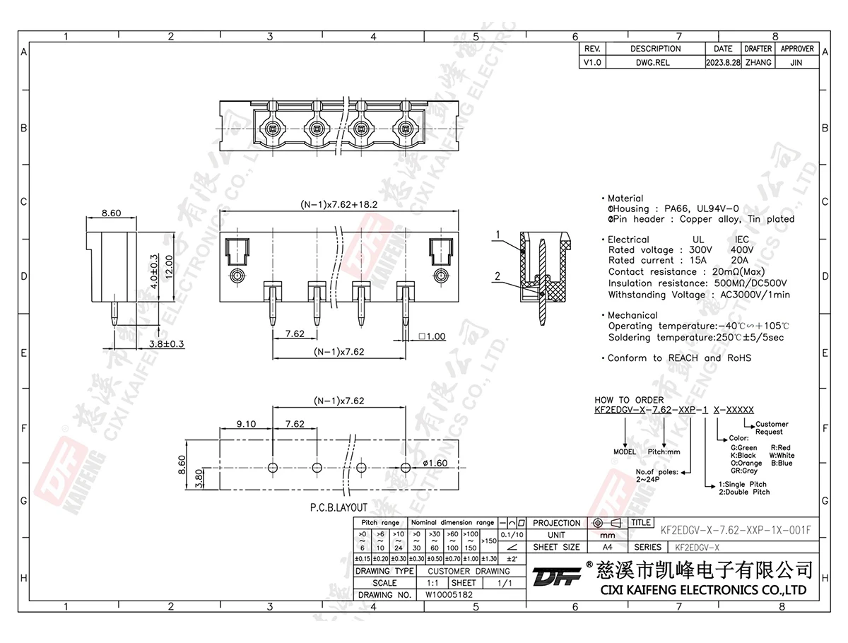 Pluggable Terminal Block KF2EDGV-X-7.62mm-001F