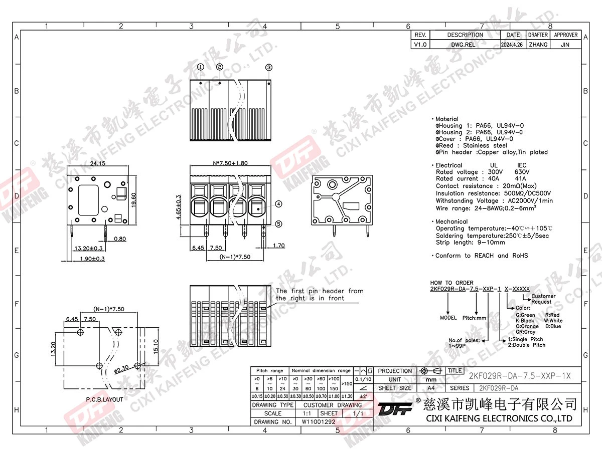 PCB Terminal Block 2KF029R-DA-7.5mm