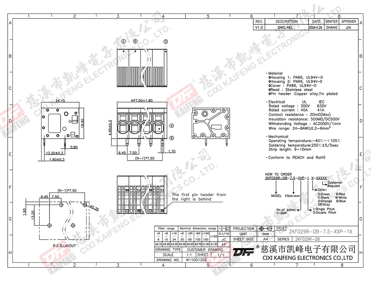 PCB Terminal Block 2KF029R-DB-7.5mm