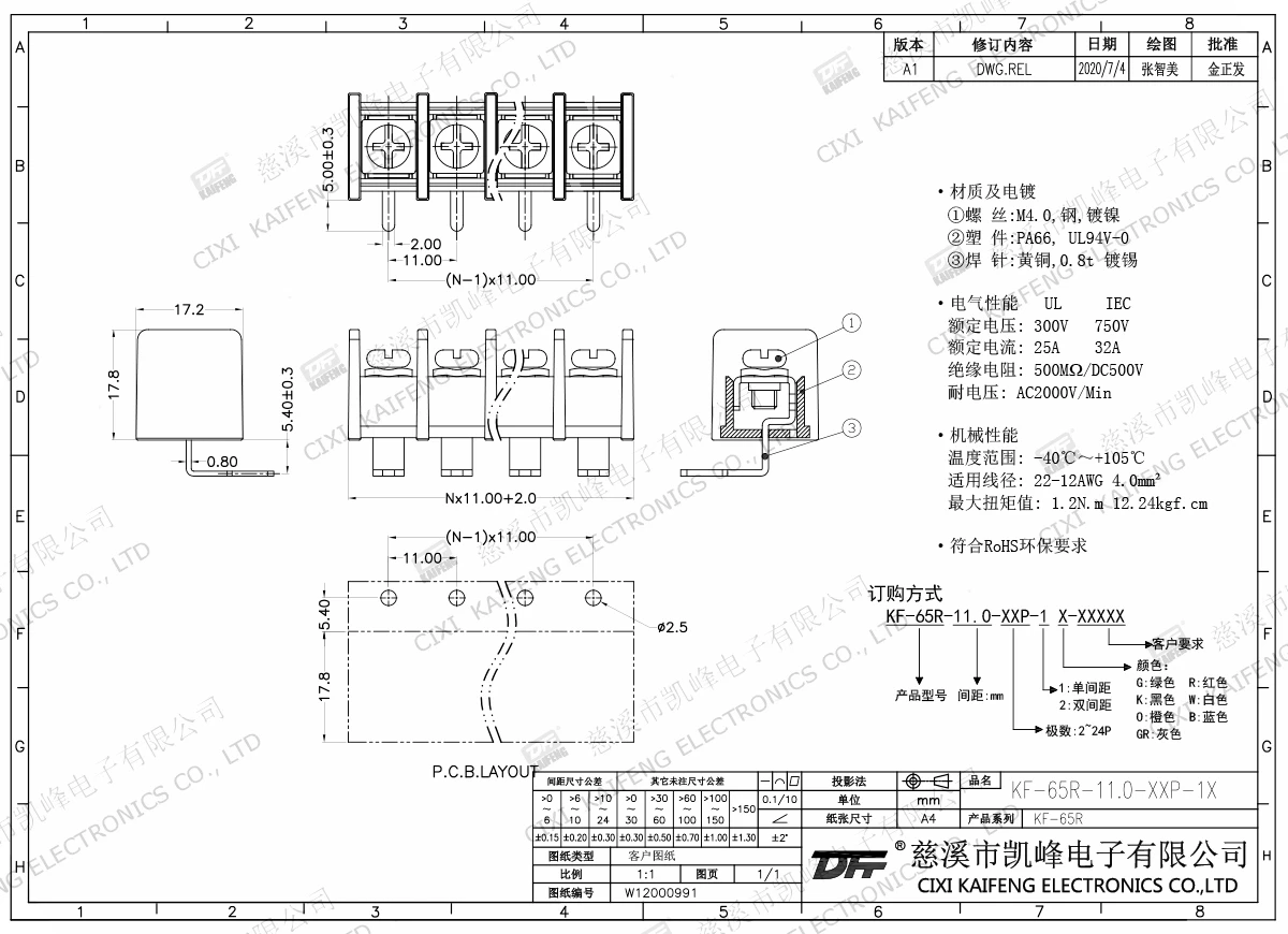 栅栏式接线端子 KF-65R-11.00mm