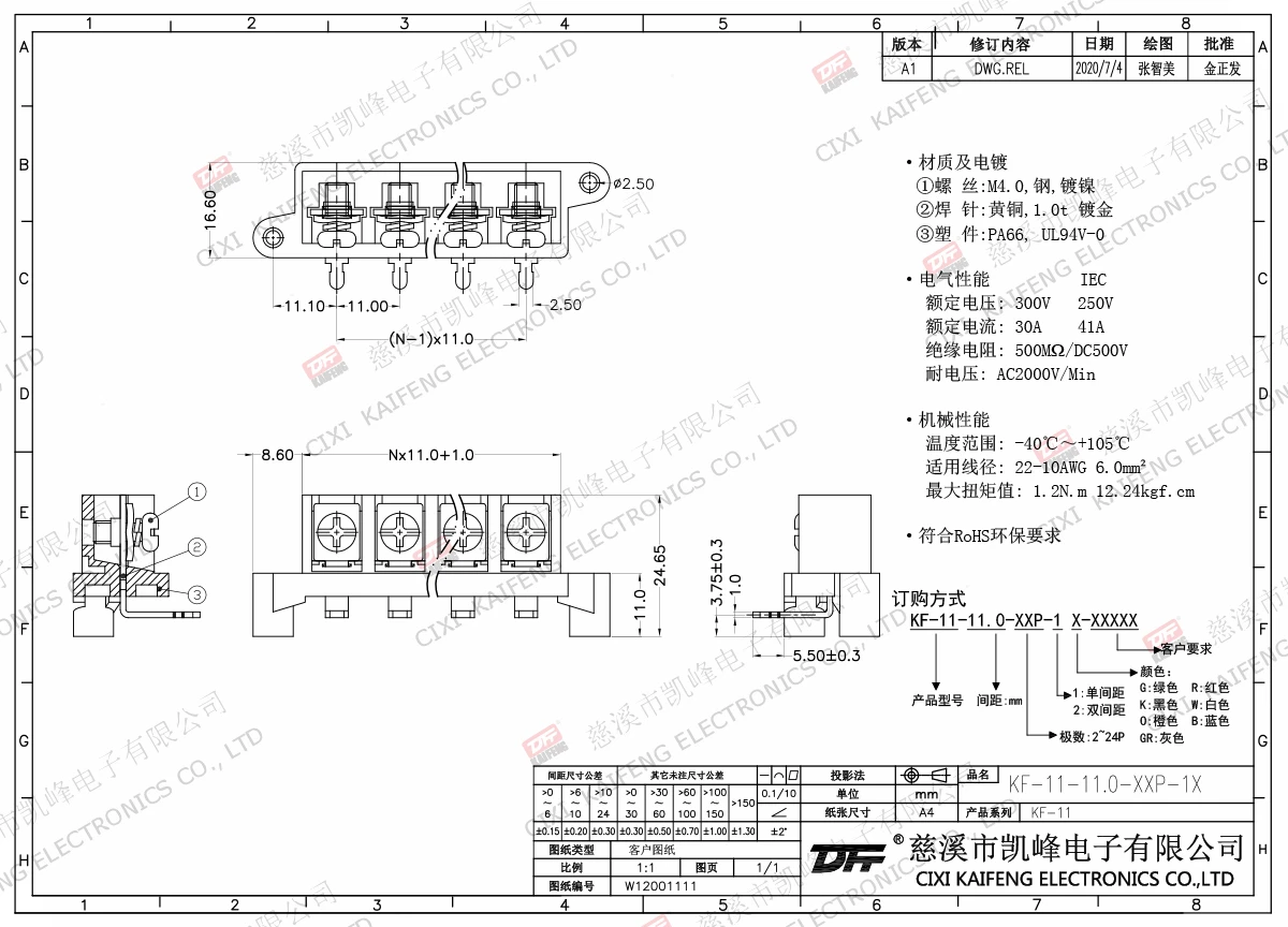 栅栏式接线端子 材质电镀:M4.0 钢,镀镍端子:黄铜,1.0t 镀镍塑件: PA66,UL94V-0电气性能ULIEC额定电压300V 250V 额定电流30A41A绝缘电阻500MΩ/DC500V耐电压AC2000V/1min使用线径22-10AWG 6.0mm²机械性能温度范围-40℃~+105℃ 扭矩1.2N.m 10.53Lb.in